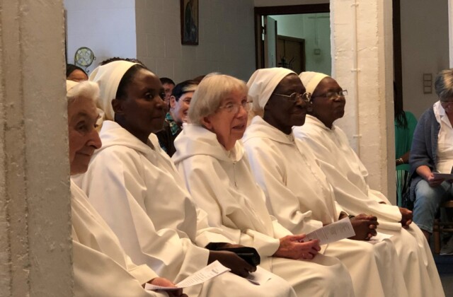 Denise : Aujourd’hui, 50 ans après mes premiers vœux, je peux dire que je ne suis pas encore arrivée, je n’ai pas complètement trouvé ce que je cherchais… je cherche encore car je réalise qu’après 50 ans je n’ai pas fini d’apprendre à prier ! Chaque jour je fais confiance en la miséricorde du Seigneur que j’invoque en disant : « Dieu viens à mon aide ! » Je garde en moi ce désir d’apprendre à prier, d’entrer de plus en plus dans une relation intime avec le Seigneur pour étendre le Règne de Dieu et vivre un témoignage d’une prière qui rejoint les besoins du monde. Merci à toutes mes sœurs en congrégation qui m’ont aidé dans mon cheminement jusqu’aujourd’hui. Je vais finir par une petite prière que je dis tous les jours : « Seigneur apprends-moi à prier, apprend moi à t’aimer et à faire ta volonté. Envoi ton Esprit sur tous tes enfants. »