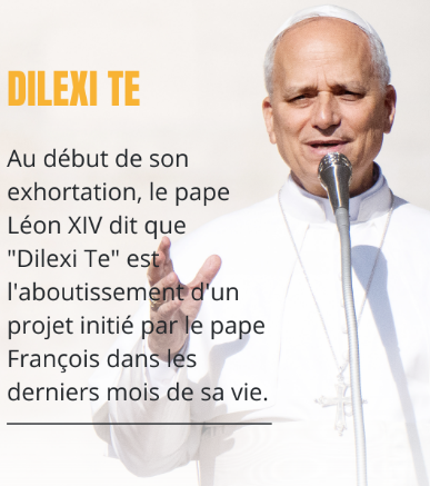 « Ce Jésus qui dit : “Les pauvres, vous les aurez toujours avec vous” exprime la même chose lorsqu’il promet aux disciples : “Je suis avec vous pour toujours” (Mt 28, 20). Et en même temps, ces paroles du Seigneur nous reviennent à l’esprit : “Dans la mesure où vous l’avez fait à l’un de ces plus petits de mes frères, c’est à moi que vous l’avez fait” (Mt 25, 40). Nous ne sommes pas dans le domaine de la bienfaisance, mais dans celui de la Révélation : le contact avec ceux qui n’ont ni pouvoir ni grandeur est une manière fondamentale de rencontrer le Seigneur de l’histoire. À travers les pauvres, Il a encore quelque chose à nous dire » (Dilexi te, 5).